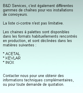 B&D Services, c'est également différentes gammes de chaînes pour vos installations de convoyeurs.